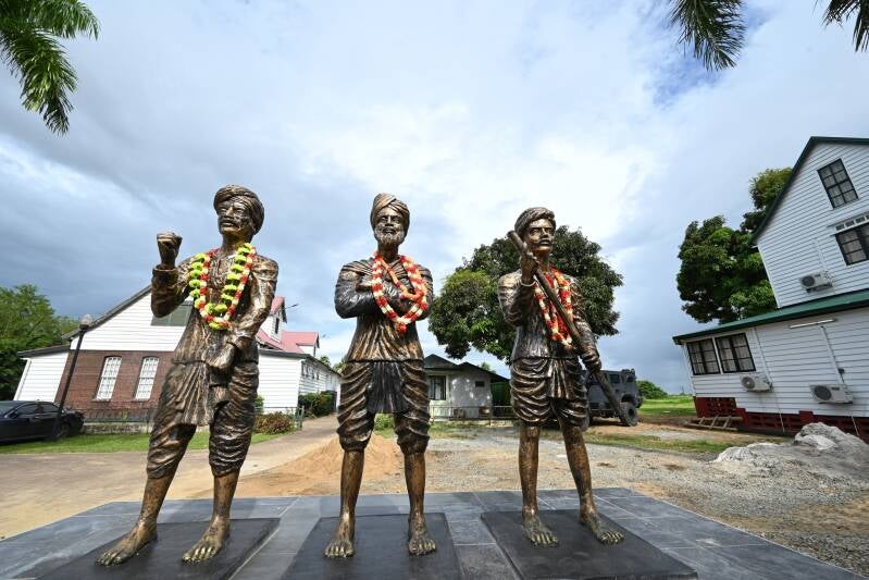 Drie Hindostaanse verzetsstrijders staan sinds kort voor het Fort Zeelandia in Paramaribo. Hun namen zijn Mathoora, Ramjanee en Jumpa Rajgaro. Drie strijders die niet bang waren om op te komen voor hun lotgenoten. Het monument werd onthuld ter gelegenheid van de 150-jarige immigratie van de Hindostanen in Suriname.